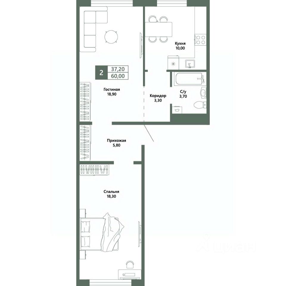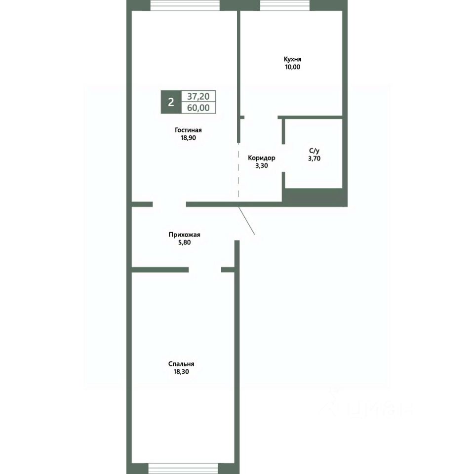 Общая площадь60 м²