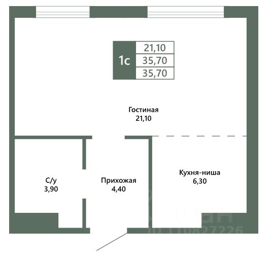 Общая площадь35,7 м²