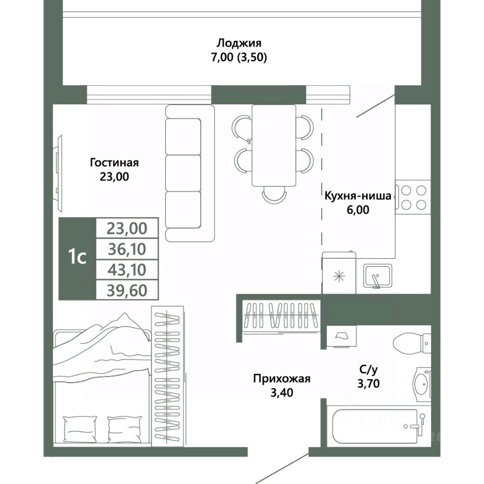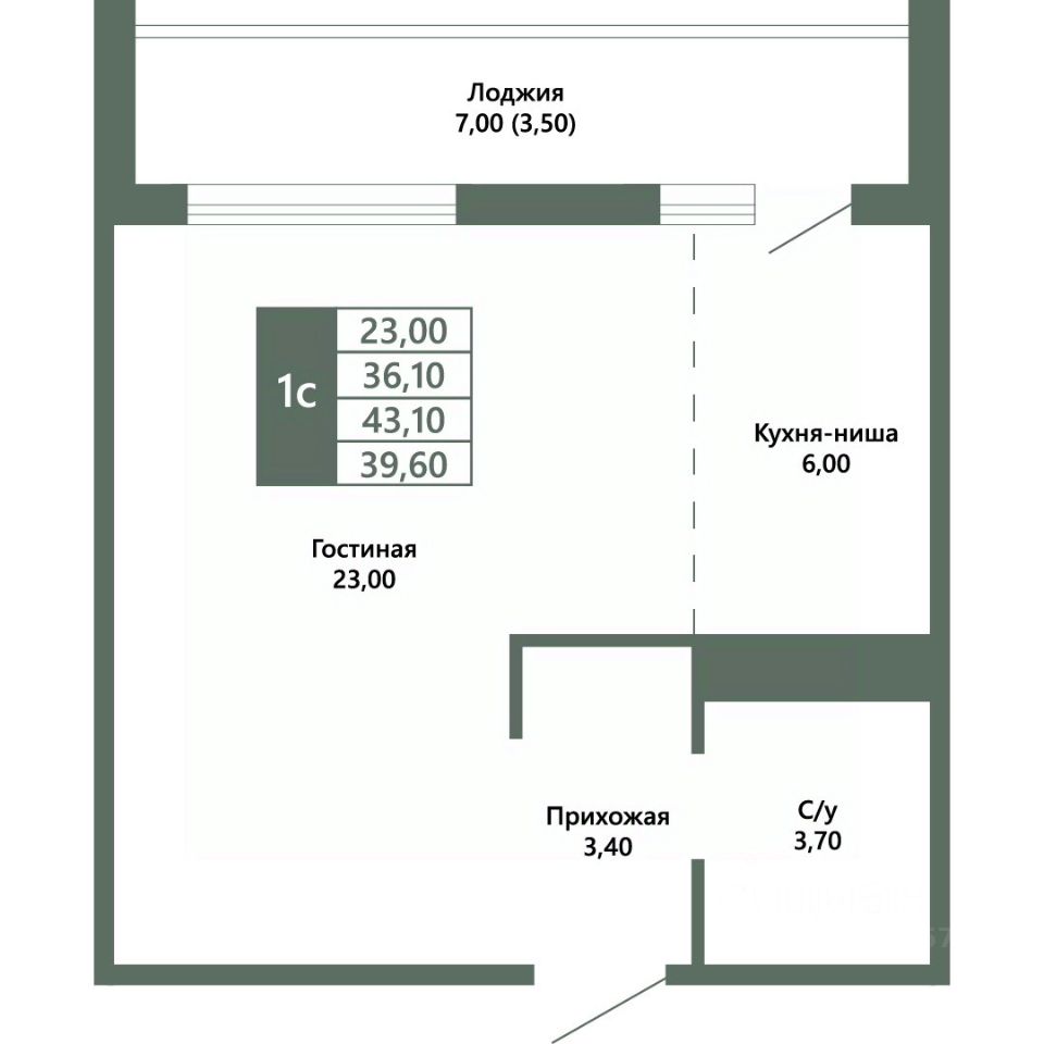 Общая площадь39,7 м²