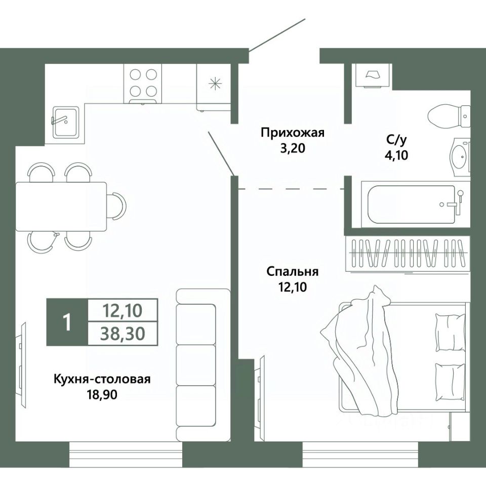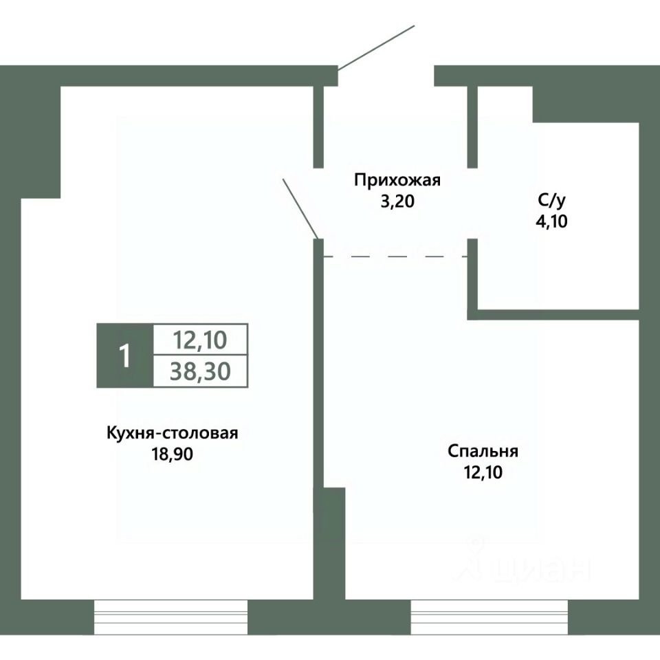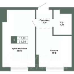 Общая площадь38,3 м²