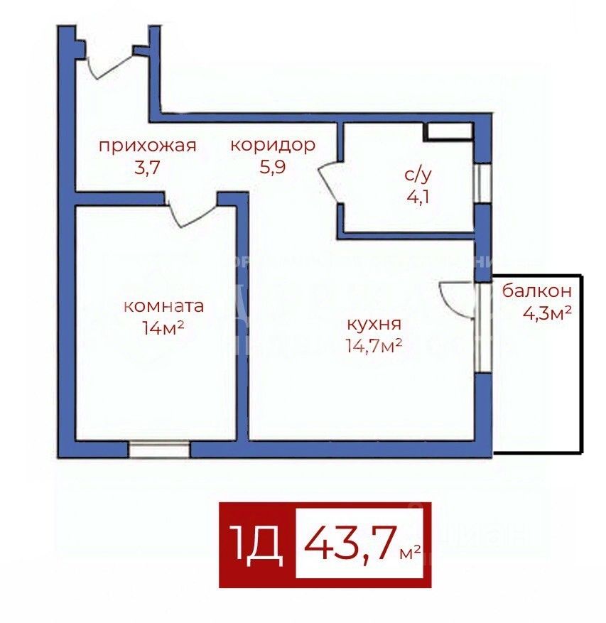 Квартира площадью 43,7 кв. м расположена на 9-м этаже 16-этажного панельного дома, построенного в 2026 году. Жилая площадь составляет 23 кв. м, площадь кухни — 5,7 кв. м. Две комнаты имеют площадь 14 кв. м и 9 кв. м соответственно. Квартиру можно приобрести как в черновой отделке, так и с ремонтом.
