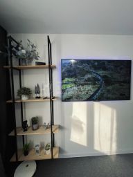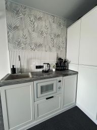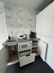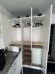 Мебель и техника: Всё что есть на фото остается — холодильник, встроенная микроволновая печь, телевизор Xiaomi 60 дюймов, робот пылесос, а также раскладывающаяся кровать.