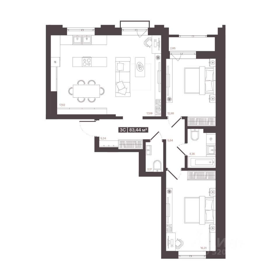 Продаётся 3-комнатная квартира в строящемся доме (Корпус 1 (БС 4-6)), срок сдачи: I-кв. 2028, общей площадью 83.44 кв.м., на 2 этаже. В рамках программы КРТ будет реализован жилой квартал "Моне". Строительство объекта будет осуществляться в 4 очереди, а общий срок реализации проекта составит около 10 лет. Также в проекте запланировано строительство детского сада.