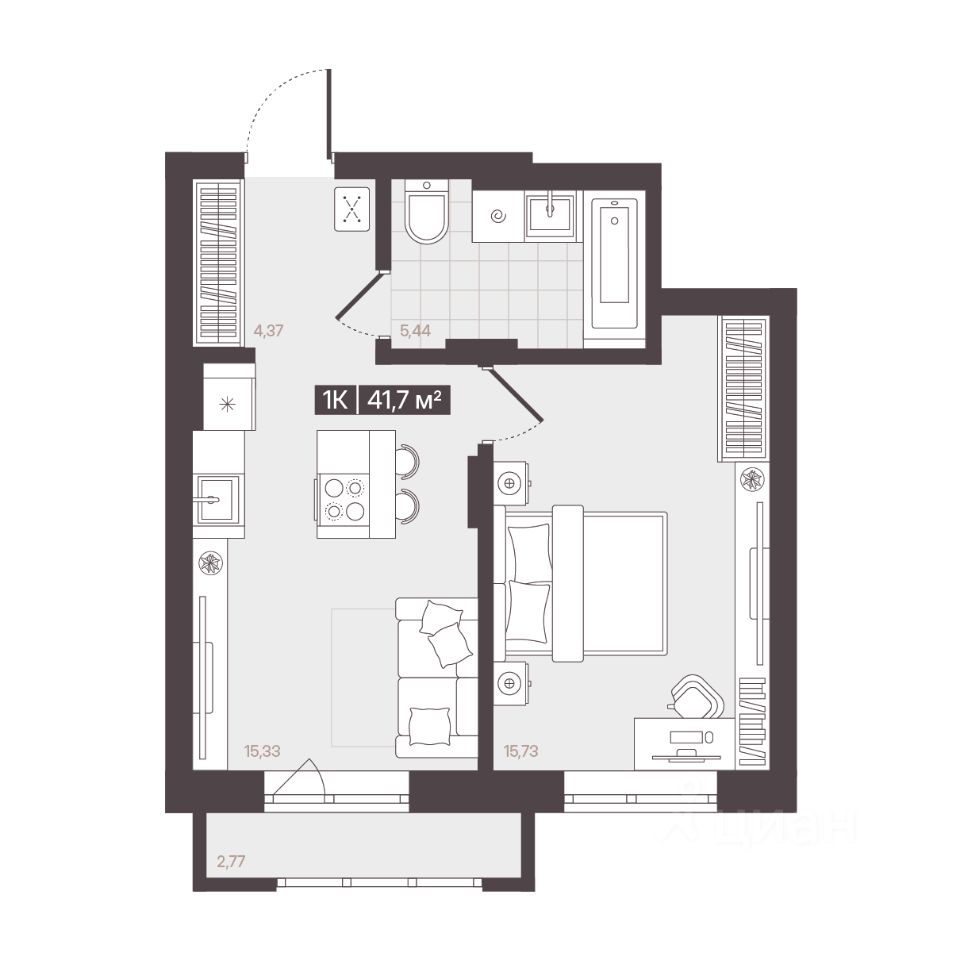 Продаётся 1-комнатная квартира в строящемся доме (Корпус 1 (БС 4-6)), срок сдачи: I-кв. 2028, общей площадью 41.7 кв.м., на 2 этаже. В рамках программы КРТ будет реализован жилой квартал "Моне". Строительство объекта будет осуществляться в 4 очереди, а общий срок реализации проекта составит около 10 лет. Также в проекте запланировано строительство детского сада.