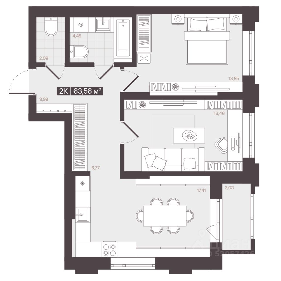 Продаётся 2-комнатная квартира в строящемся доме (Корпус 2 (БС 7)), срок сдачи: I-кв. 2028, общей площадью 63.56 кв.м., на 12 этаже. В рамках программы КРТ будет реализован жилой квартал "Моне". Строительство объекта будет осуществляться в 4 очереди, а общий срок реализации проекта составит около 10 лет. Также в проекте запланировано строительство детского сада.