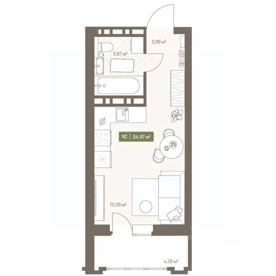 Продаётся студия в строящемся доме (Дом 23А), срок сдачи: III-кв. 2026, общей площадью 24.97 кв.м., на 15 этаже. Новый жилой комплекс "Проспект Московский, 23а" от Специализированного застройщика "СД-Проектируемый" расположен по адресу: г. Кемерово, по ул. Московский проспект.