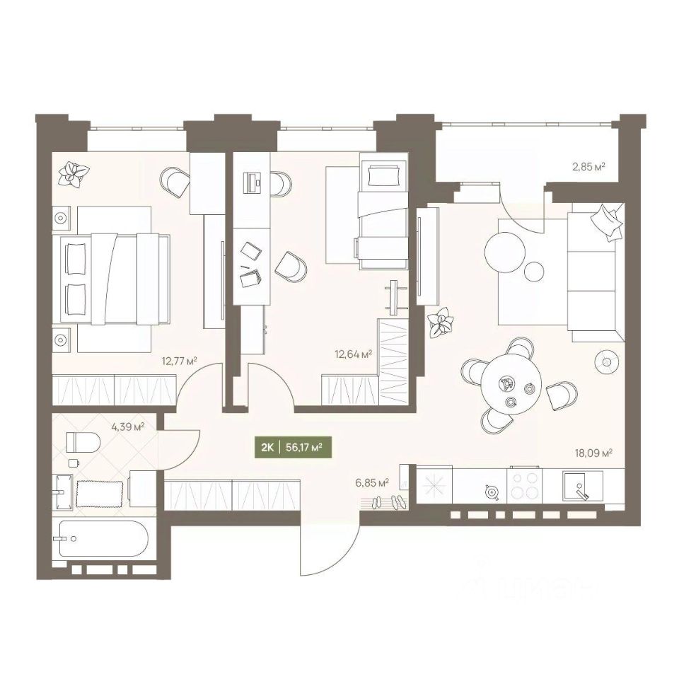 Продаётся 2-комнатная квартира в строящемся доме (Дом 23А), срок сдачи: III-кв. 2026, общей площадью 56.17 кв.м., на 3 этаже. Новый жилой комплекс "Проспект Московский, 23а" от Специализированного застройщика "СД-Проектируемый" расположен по адресу: г. Кемерово, по ул. Московский проспект.