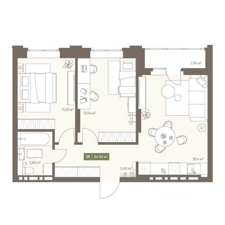 Продаётся 2-комнатная квартира в строящемся доме (Дом 23А), срок сдачи: III-кв. 2026, общей площадью 54.5 кв.м., на 8 этаже. Новый жилой комплекс "Проспект Московский, 23а" от Специализированного застройщика "СД-Проектируемый" расположен по адресу: г. Кемерово, по ул. Московский проспект.