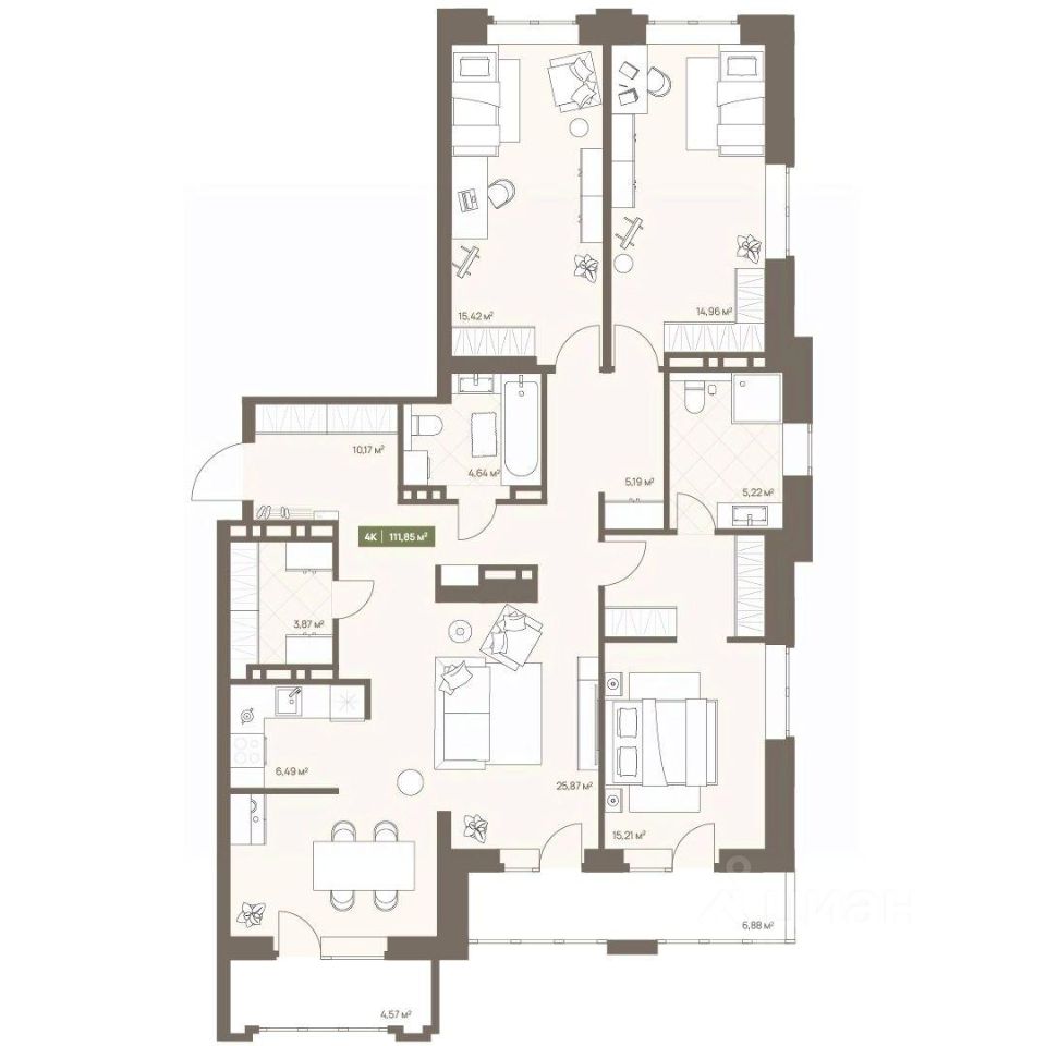 Продаётся 4-комнатная квартира в строящемся доме (Дом 23А), срок сдачи: III-кв. 2026, общей площадью 111.85 кв.м., на 14 этаже. Новый жилой комплекс "Проспект Московский, 23а" от Специализированного застройщика "СД-Проектируемый" расположен по адресу: г. Кемерово, по ул. Московский проспект.