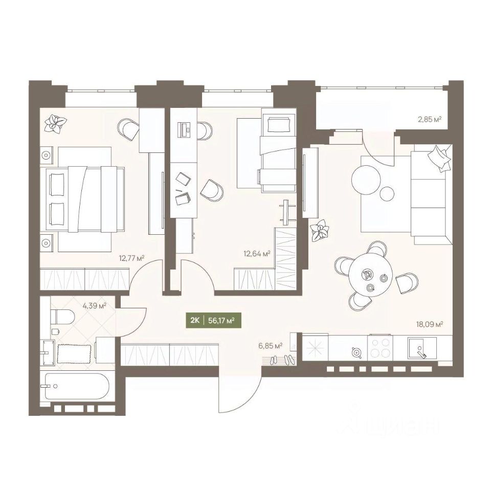 Продаётся 2-комнатная квартира в строящемся доме (Дом 23А), срок сдачи: III-кв. 2026, общей площадью 56.17 кв.м., на 15 этаже. Новый жилой комплекс "Проспект Московский, 23а" от Специализированного застройщика "СД-Проектируемый" расположен по адресу: г. Кемерово, по ул. Московский проспект.