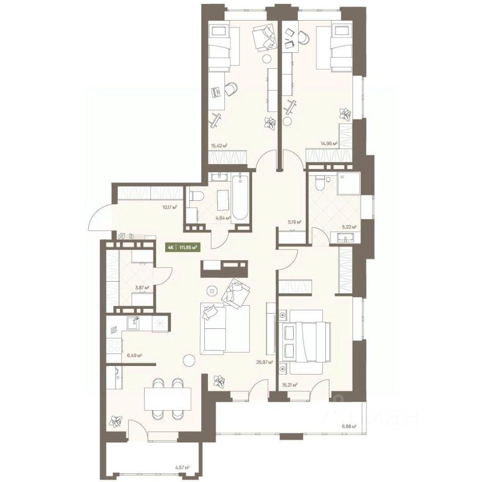 Продаётся 4-комнатная квартира в строящемся доме (Дом 23А), срок сдачи: III-кв. 2026, общей площадью 111.85 кв.м., на 15 этаже. Новый жилой комплекс "Проспект Московский, 23а" от Специализированного застройщика "СД-Проектируемый" расположен по адресу: г. Кемерово, по ул. Московский проспект.