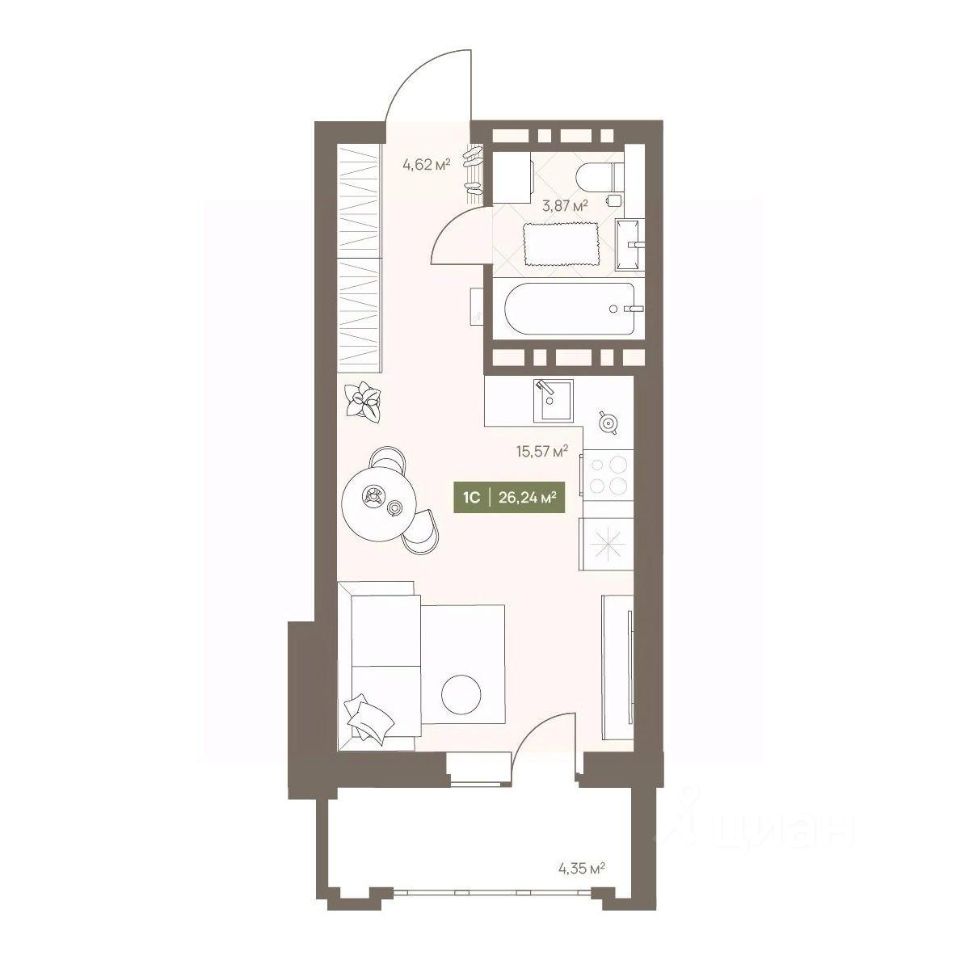 Продаётся студия в строящемся доме (Дом 23А), срок сдачи: III-кв. 2026, общей площадью 26.24 кв.м., на 4 этаже. Новый жилой комплекс "Проспект Московский, 23а" от Специализированного застройщика "СД-Проектируемый" расположен по адресу: г. Кемерово, по ул. Московский проспект.