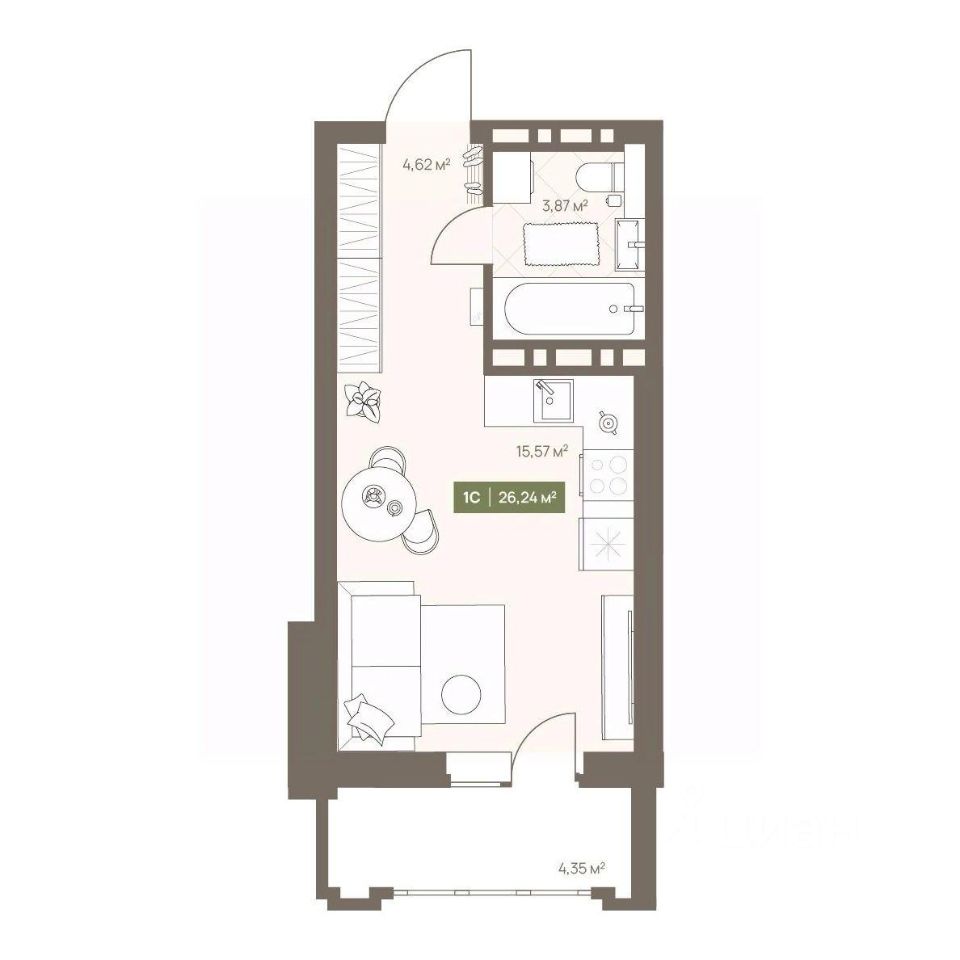 Продаётся студия в строящемся доме (Дом 23А), срок сдачи: III-кв. 2026, общей площадью 26.24 кв.м., на 7 этаже. Новый жилой комплекс "Проспект Московский, 23а" от Специализированного застройщика "СД-Проектируемый" расположен по адресу: г. Кемерово, по ул. Московский проспект.