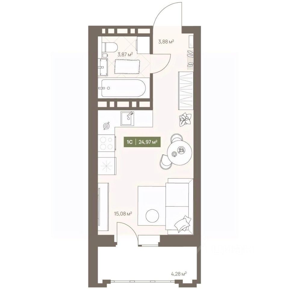 Продаётся студия в строящемся доме (Дом 23А), срок сдачи: III-кв. 2026, общей площадью 24.97 кв.м., на 7 этаже. Новый жилой комплекс "Проспект Московский, 23а" от Специализированного застройщика "СД-Проектируемый" расположен по адресу: г. Кемерово, по ул. Московский проспект.