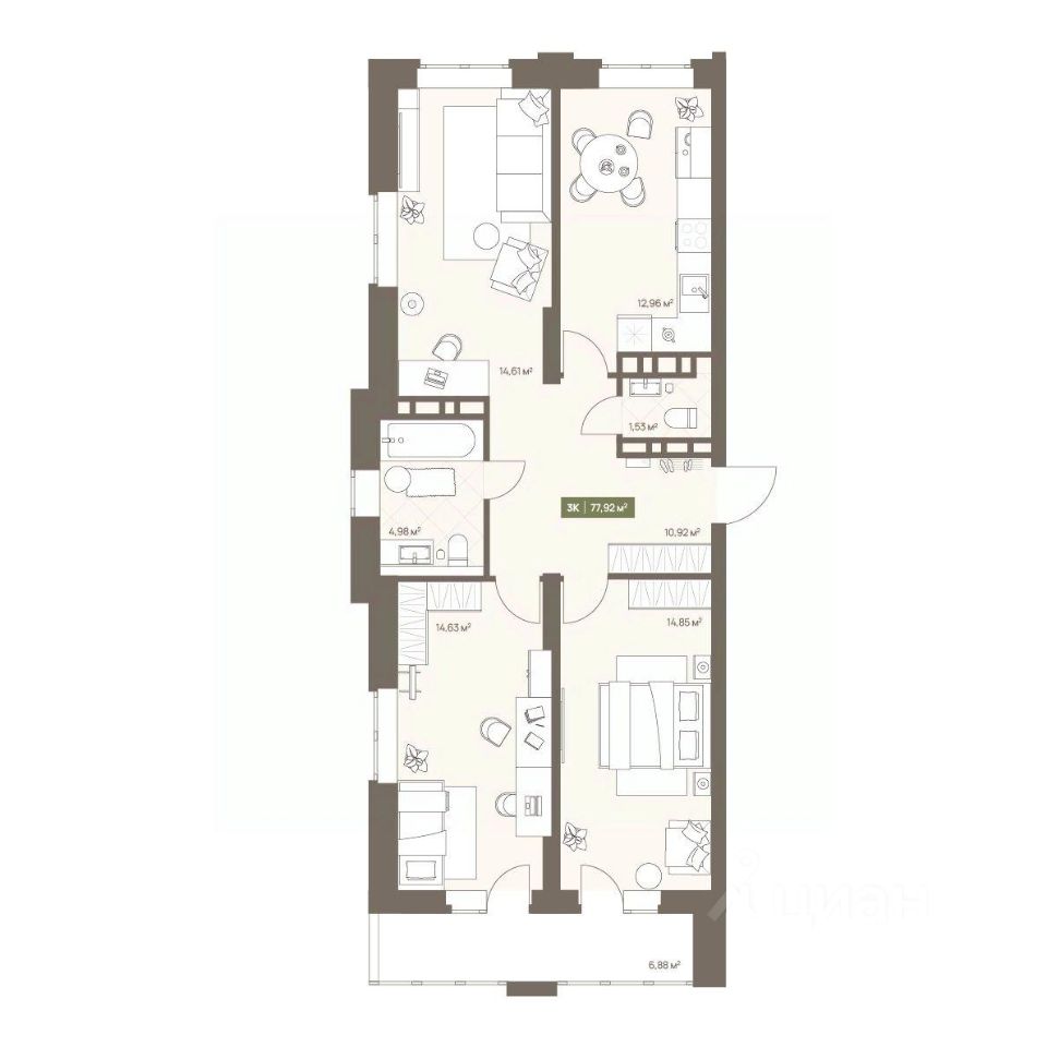 Продаётся 3-комнатная квартира в строящемся доме (Дом 23А), срок сдачи: III-кв. 2026, общей площадью 77.92 кв.м., на 13 этаже. Новый жилой комплекс "Проспект Московский, 23а" от Специализированного застройщика "СД-Проектируемый" расположен по адресу: г. Кемерово, по ул. Московский проспект.