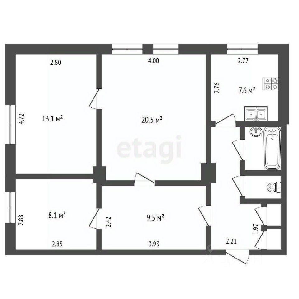 Высота потолков 2.7 метра и косметический ремонт с натяжными потолками и линолеумом создают аккуратное, готовое к заезду пространство.