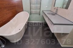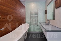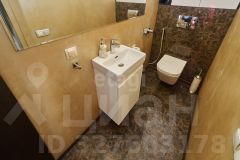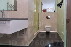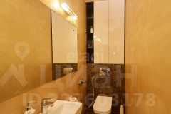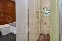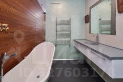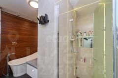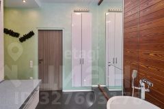В большом санузле 9 кв.м., установлена отдельная ванная из искусственного камня Marmite, столешница из искусственного камня, встроенный душ, одна из стен декорирована лиственницей, покрытой маслом, два встроенных шкафа (один под стиральную машину Samsung, второй хоз. блок).
