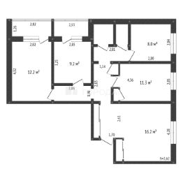 В квартире четыре изолированные комнаты с площадями 12,2, 9,2, 11,3 и 16,2 квадратных метров соответственно. Кухня площадью 8 квадратных метров станет местом для кулинарных экспериментов. Один раздельный санузел обеспечит удобство для всех членов семьи.