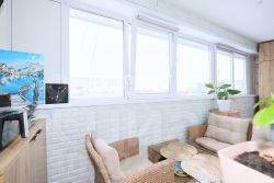Лоджия в данной квартире - дополнительное место для отдыха, а также для хранения вещей в встроенных шкафах! Лоджия утеплена, проведено электричество, установлены пластиковые окна с 4-камерным профилем, что обеспечивает повышенную тепло и звукоизоляцию, не пропускает холод. Также на окнах остаются рулонные шторы. Утром можно наблюдать рассвет, во второй половине дня не жарко, солнце уходит на другую сторону.