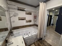 В сан.узле установлен теплый пол, ванная с гидромассажем, все коммуникации водоснабжения медные, разводка медь.
