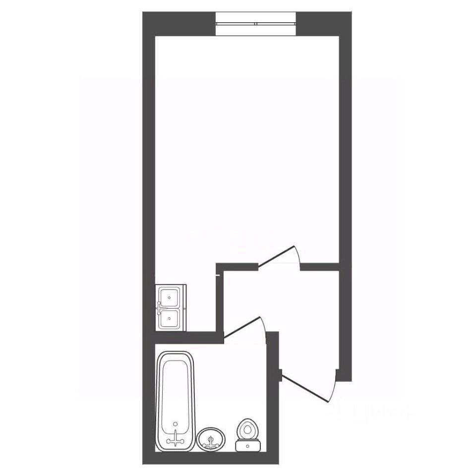 Планировка квартиры функционально разделена на прихожую, просторную комнату и санузел. Вы с легкостью сможете организовать пространство по своему усмотрению.