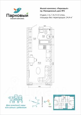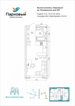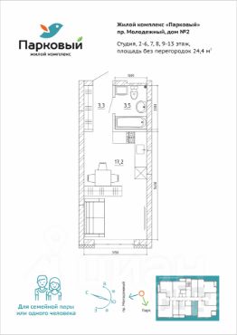Студия в ЖК "Парковый" с шикарным видом! Закрытый двор + Собственный парк.