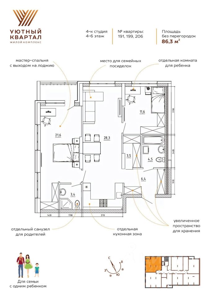 Общая площадь86,3 м²