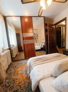 Остается вся мебель. в маленькой спальне встроенный большой шкаф купе с зеркалом.