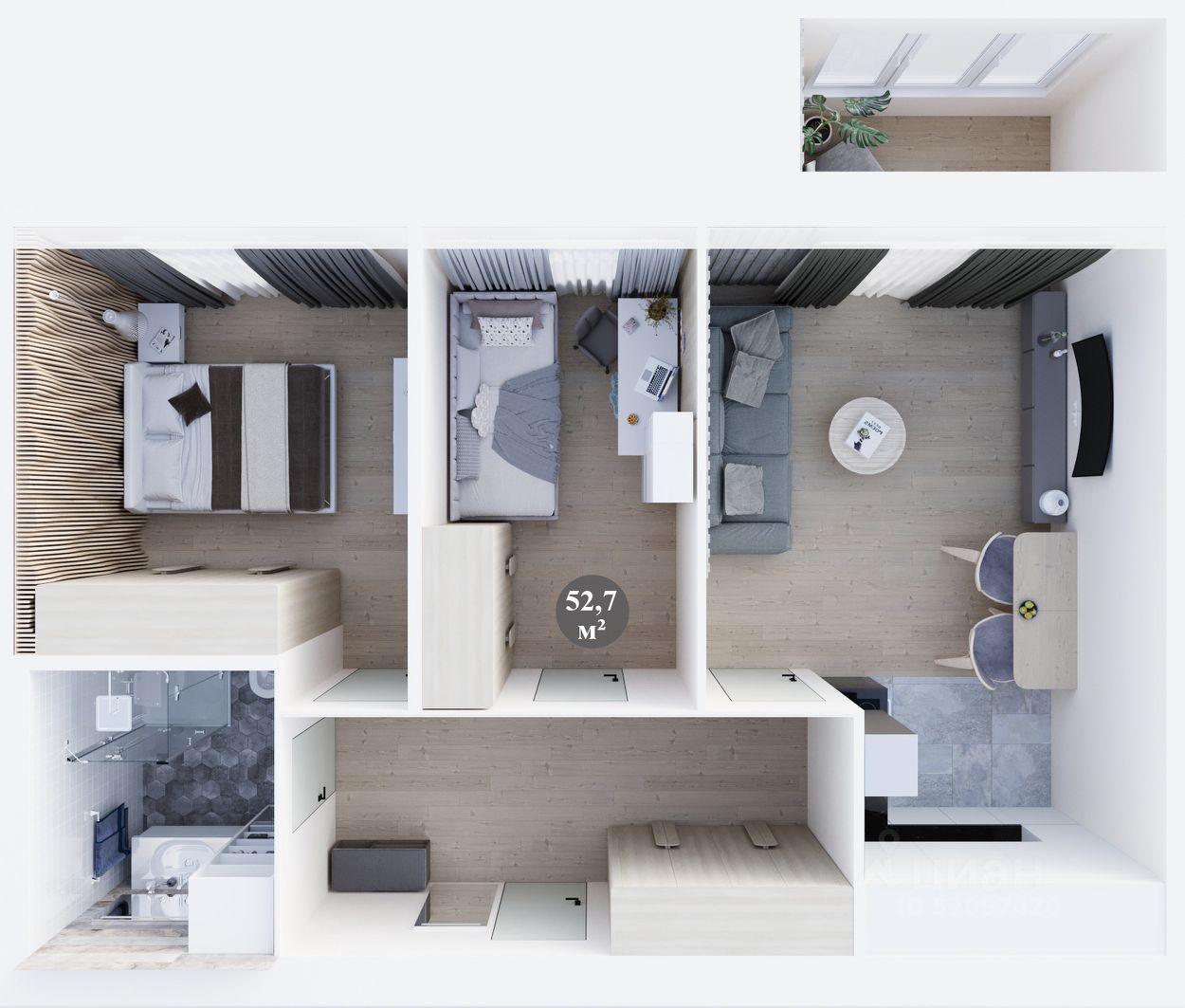 Общая площадь52,7 м²