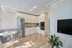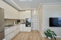• по периметру квартиры ленточное освещение по потолку. Можно выстроить разную интенсивность освещения