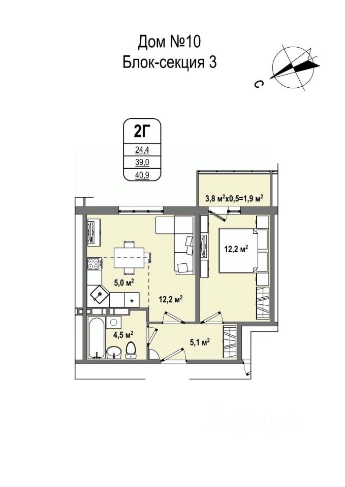 Общая площадь40,9 м²