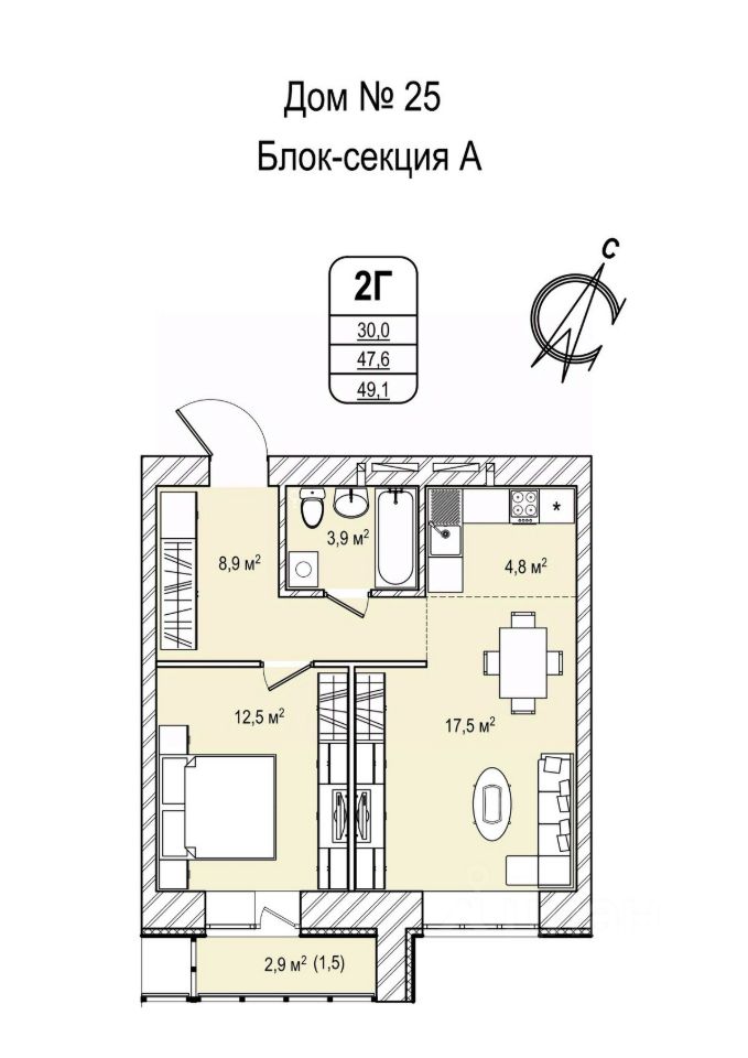 Продаётся 2-комнатная квартира в сданном доме (Восточный пр-т, 33 (Дом 25)), срок сдачи: III-кв. 2025, общей площадью 49.1 кв.м., на 13 этаже. Расположение, транспортная доступность