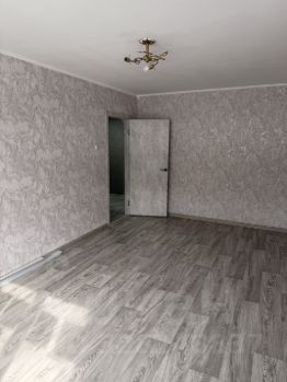 Квартира после ремонта, пластиковые окна, на пол постелен качественный линолеум, стены выровнены и наклеены обои, потолки все выровнены и побелены, установлены новые межкомнатные двери, кухня обшита панелями, трубы пропилен.