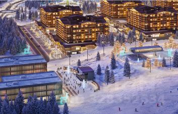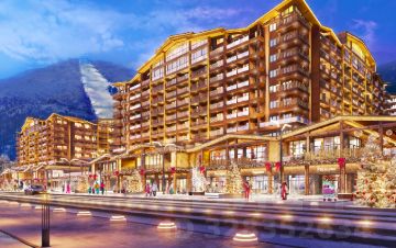 Территория прокета будет пешеходной, с широкой благоустроенной прогулочной аллеей, на которой разместятся магазины, рестораны и кафе. В центральной части гостиничного комплекса расположена событийная площадь . Все отели соответствуют стандартам горнолыжных курортов мирового уровня. Между собой отели соединены стилобатом, на котором расположены открытые круглогодичные бассейны с саунами и барной зоной, где можно расслабиться. Это позволит расширить сезон использования апартаментов.