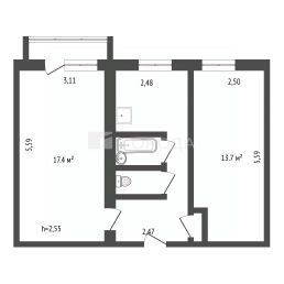 Квартира расположена на четвёртом этаже пятиэтажного панельного дома 1984 года постройки. Жилая площадь составляет 31 кв. м, площадь кухни — 6,2 кв. м. Комнаты изолированы, окна выходят на улицу. В квартире старый ремонт, что даёт возможность новому владельцу реализовать свои дизайнерские идеи.