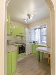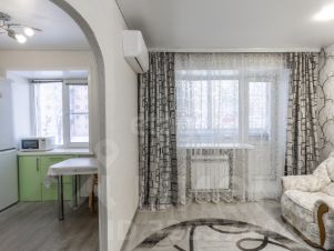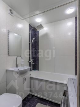 Санузел отделан светлой плиткой, он достаточно просторный для размещения стиральной машины. Часть мебели остается в квартире по договоренности с новым владельцем.