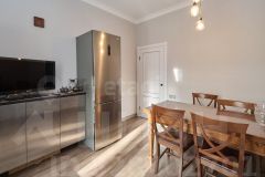 Высокие трехметровые потолки подчеркивают объем помещений, в которых выполнен качественный современный ремонт готовый для комфортного проживания: Полностью заменены коммуникации (сантехника, электрика), внутренние перегородки - двойной гипсокартон со звукоизолирующим наполнением, новые двери, кухня итальянская плитка, пол - кварц-виниловый ламинат, часть мебели остается.