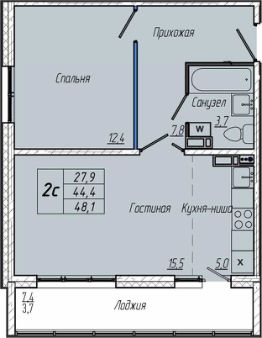 Общая площадь48,1 м²
