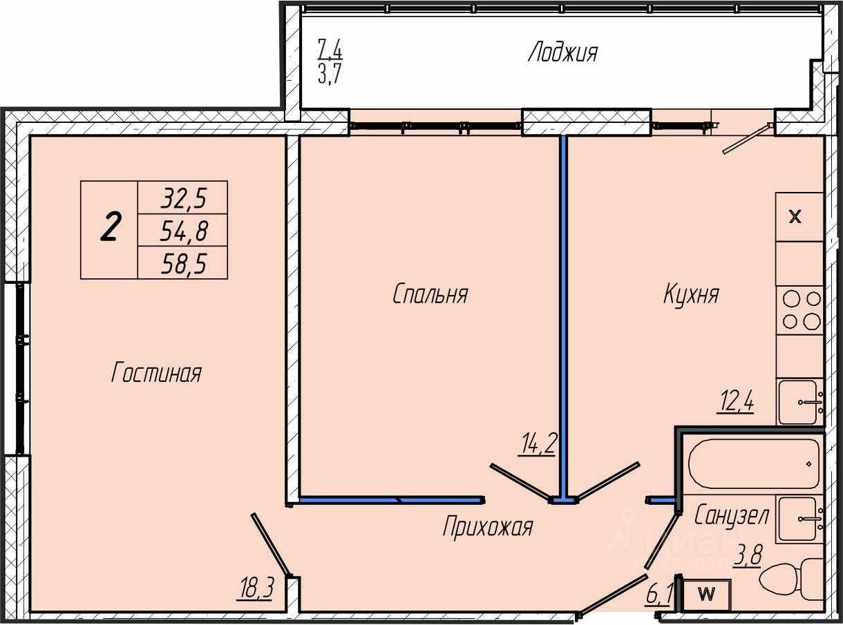 Общая площадь58,5 м²