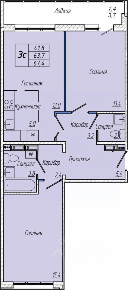 Общая площадь67,5 м²