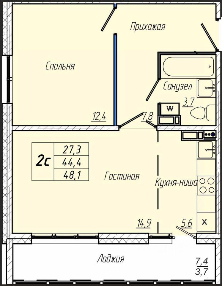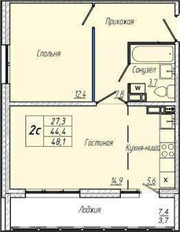 Общая площадь48,1 м²