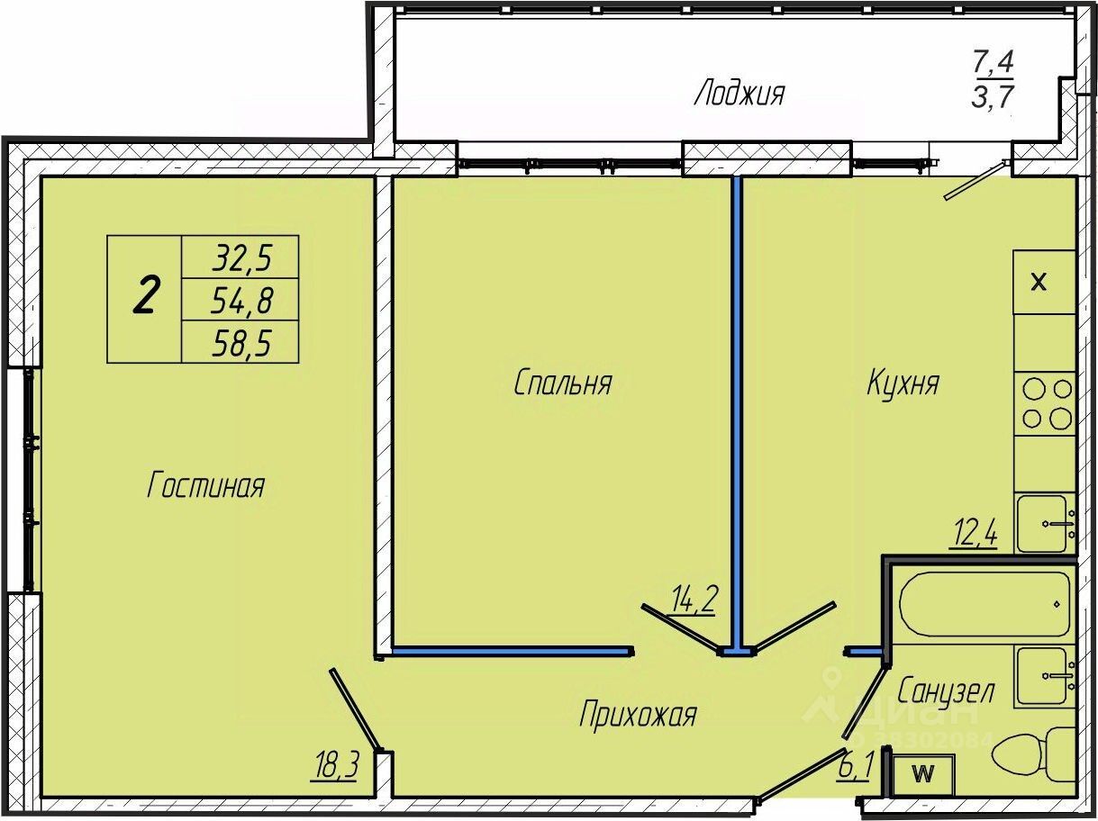 Общая площадь58,5 м²