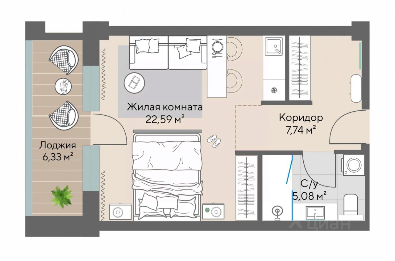 — компактные студии от 23,3 кв.м;