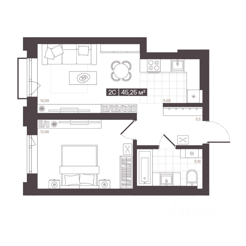 Продаётся 2-комнатная квартира в строящемся доме (Корпус 1 (БС 4-6)), срок сдачи: I-кв. 2028, общей площадью 45.25 кв.м., на 5 этаже. В рамках программы КРТ будет реализован жилой квартал "Моне". Строительство объекта будет осуществляться в 4 очереди, а общий срок реализации проекта составит около 10 лет. Также в проекте запланировано строительство детского сада.