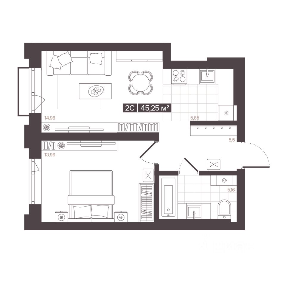 Продаётся 2-комнатная квартира в строящемся доме (Корпус 1 (БС 4-6)), срок сдачи: I-кв. 2028, общей площадью 45.25 кв.м., на 7 этаже. В рамках программы КРТ будет реализован жилой квартал "Моне". Строительство объекта будет осуществляться в 4 очереди, а общий срок реализации проекта составит около 10 лет. Также в проекте запланировано строительство детского сада.