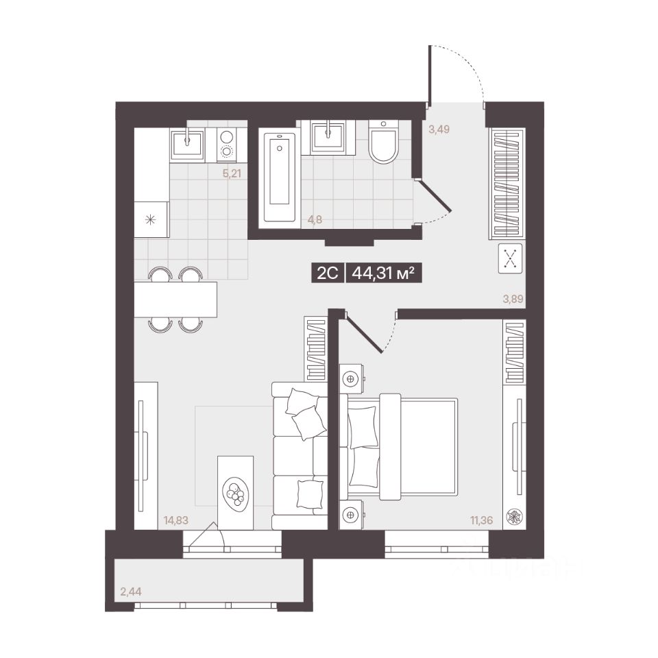 Продаётся 2-комнатная квартира в строящемся доме (Корпус 1 (БС 4-6)), срок сдачи: I-кв. 2028, общей площадью 44.31 кв.м., на 6 этаже. В рамках программы КРТ будет реализован жилой квартал "Моне". Строительство объекта будет осуществляться в 4 очереди, а общий срок реализации проекта составит около 10 лет. Также в проекте запланировано строительство детского сада.