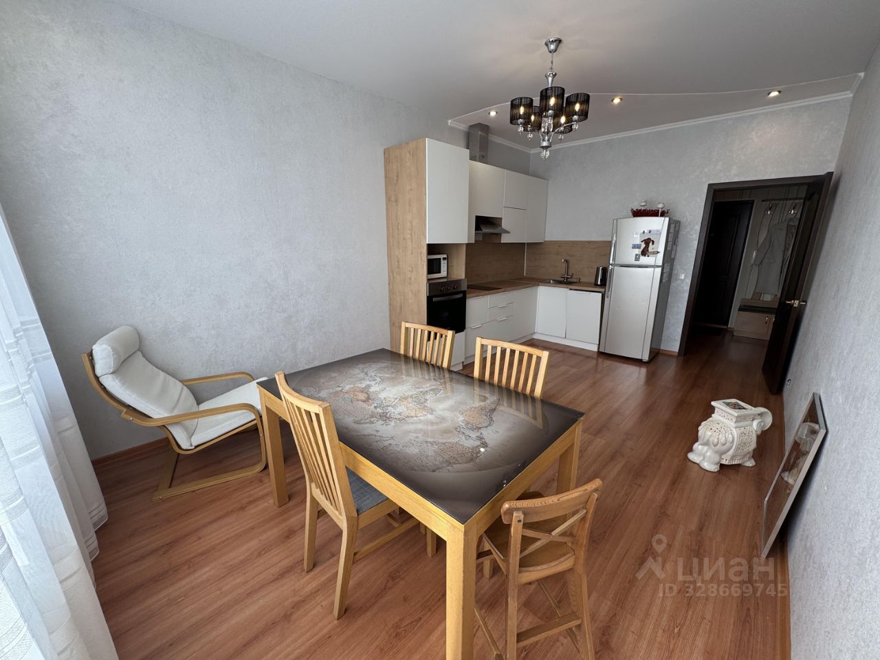 О РЕМОНТЕ: Напольное покрытие - ламинат, кроме санузла (керамическая плитка). Настенные покрытия - обои. В ванной - натяжной потолок. Есть отдельная гардеробная 3,1 м2.