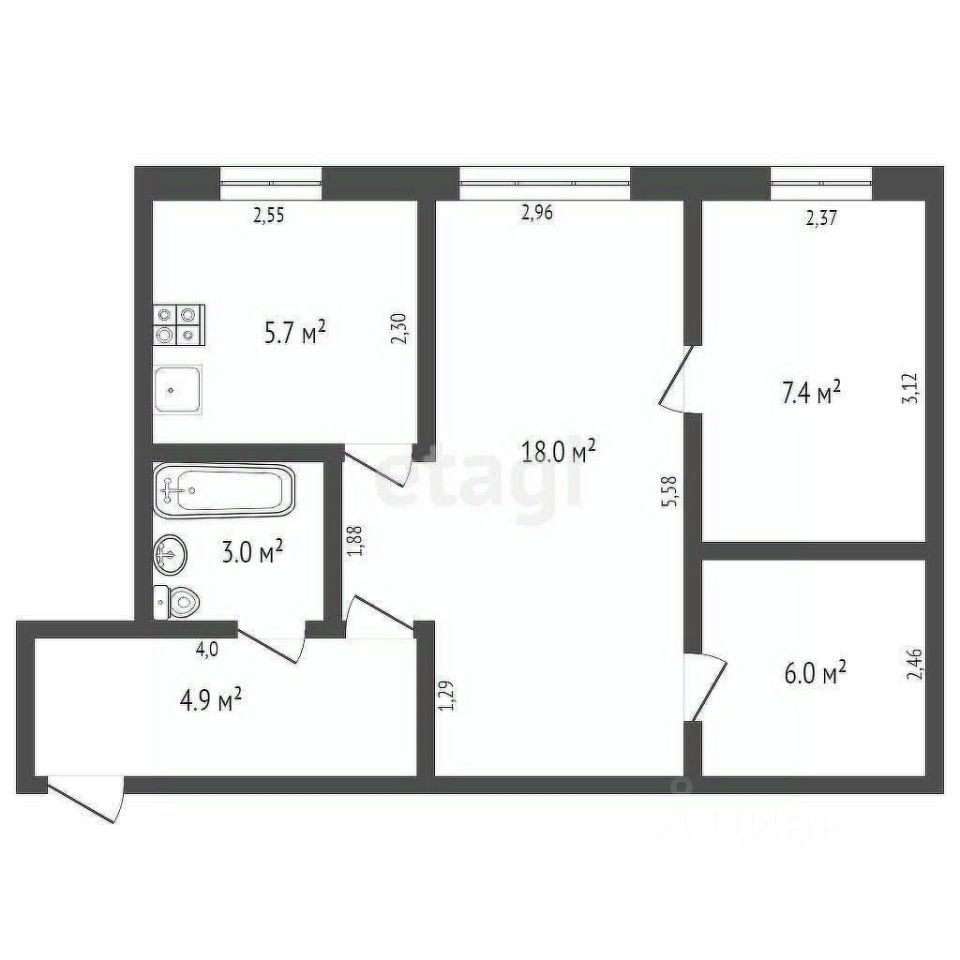 5,7 м²