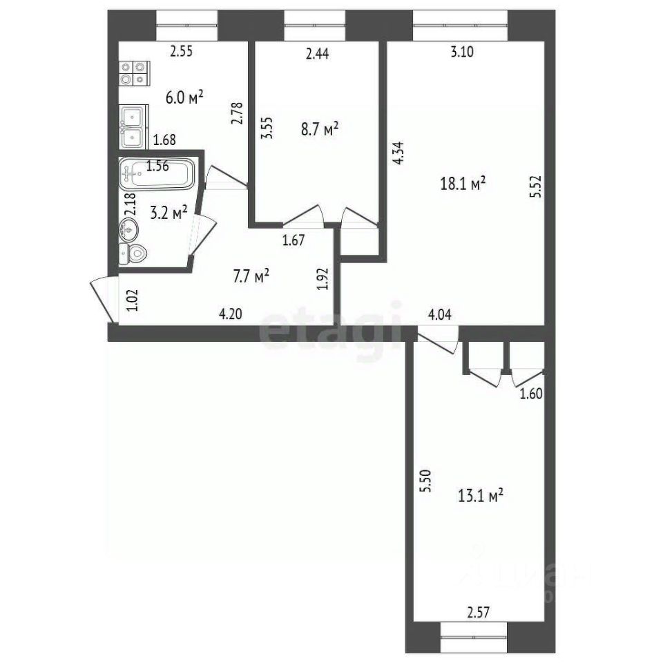 58 м²