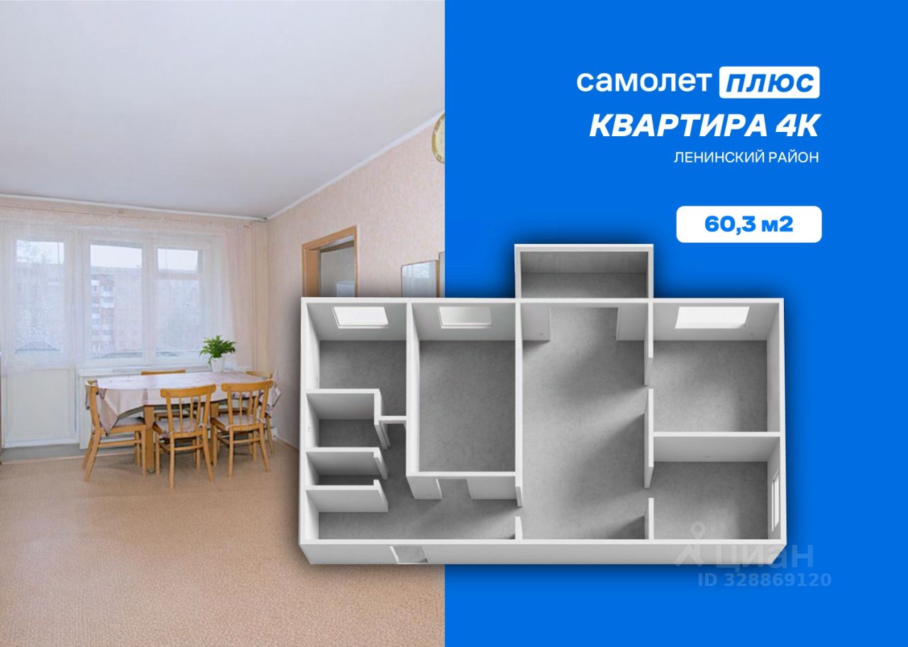 4-х к. квартиру общей плoщадью 60,3 м2, расположенной по адресу: г. Кемерово, пp-т Ленинградский д.15а, 5 этаж.